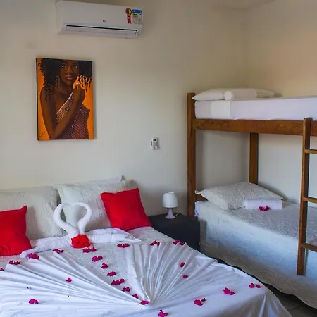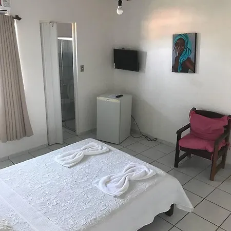 ホテル Pousada Pe Na Areia Praia de Pipaはドルフィン・ベイから1.9kmに位置し,個別のパティオをを提供しています.